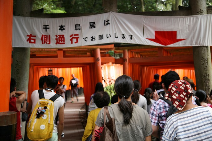 稲荷山を巡る千本鳥居からは、いろんな言語が聞えて来ます。