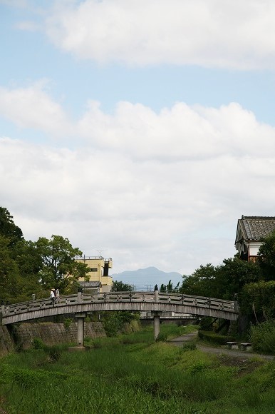 京阪電車の八幡市駅から南へ少し進むと、風流な木造の反橋(太鼓橋)が見えました。
