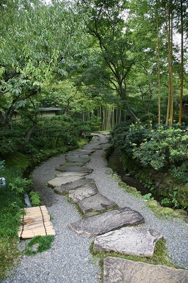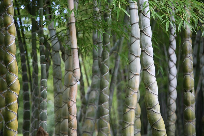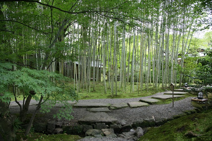 庭は、池泉回遊式日本庭園で約400種類の竹が生えている