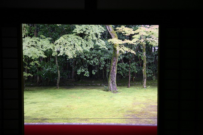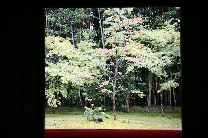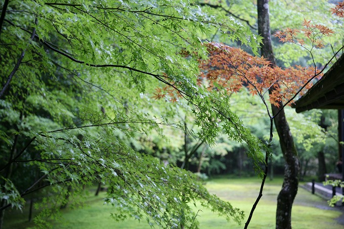 降りしきる雨の中に、楓の庭が見えました。