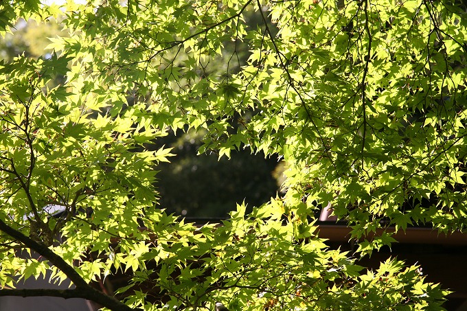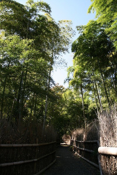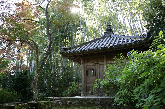 耳には竹林を渡る風の音と、目には色付き始めたもみじが