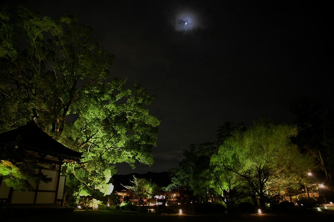 大覚寺では、見頃を迎えた紅葉と光の競演