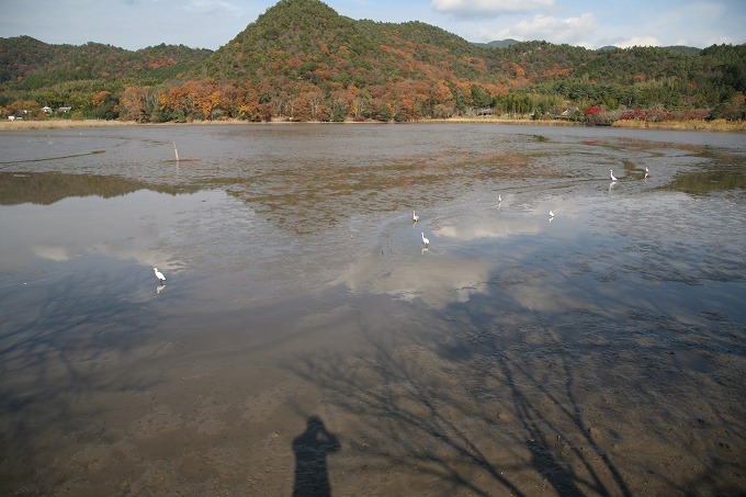 白鷺と池の景色を撮っていたら、僕のシルエットも写ってしまいました。(^^)