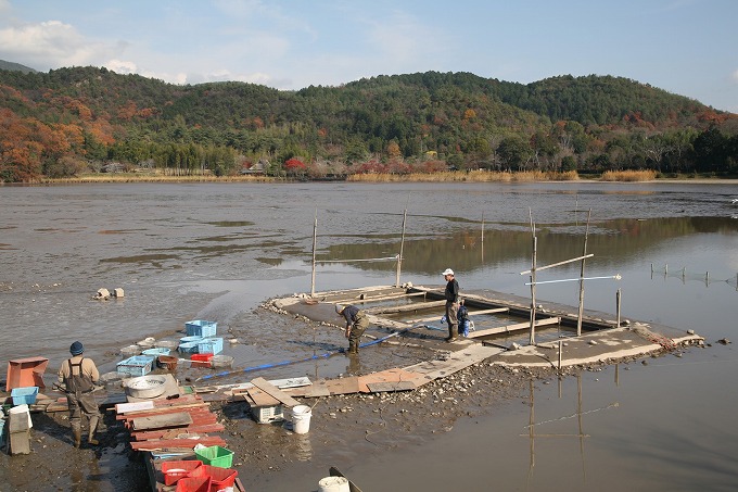 12月に入ると、池の水が抜かれ魚の販売となります。