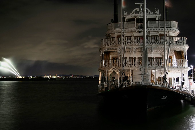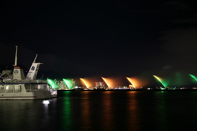 浜大津港に上がる花噴水、夜は、18:30~19:00