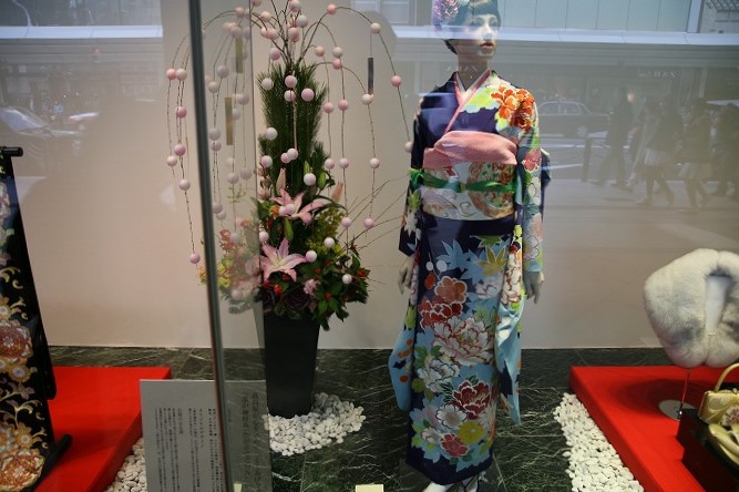 四条通りに面した高島屋さんのショーウィンドゥ。