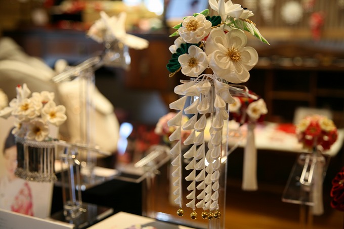 お店の中に入ると職人さん手作りの、つまみかんざしや