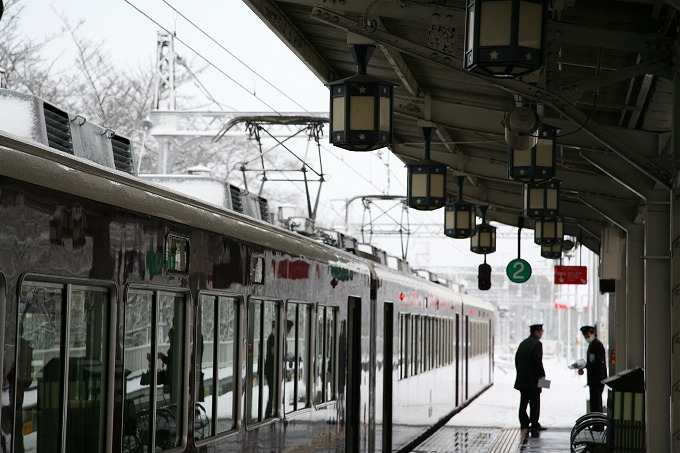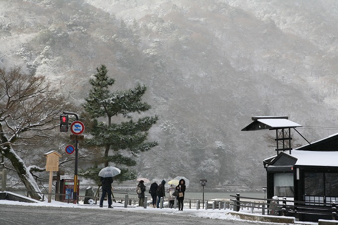 20日の雪の朝、阪急電車で嵐山へと向かいました。