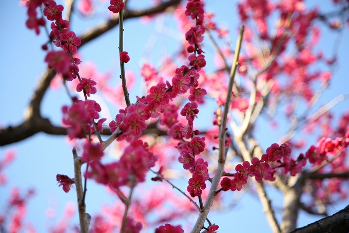青空と紅梅。