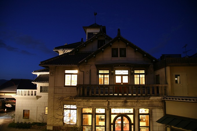 「夢二カフェ五龍閣」。大正ロマン溢れる風情ある建物。