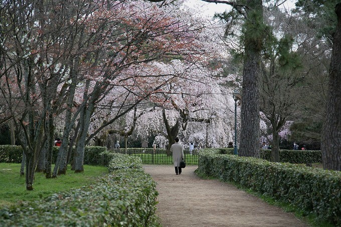 「糸桜」の咲く場所は、京都御苑の北側、今出川御門を入ってすぐの所。
