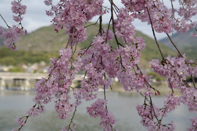 枝垂桜と渡月橋。