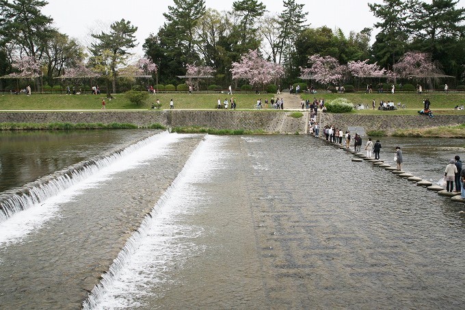 少し下流の、出町柳にある飛び石渡りは、亀の石や千鳥の石等、大きな