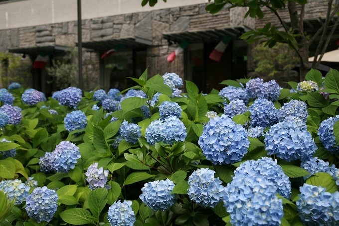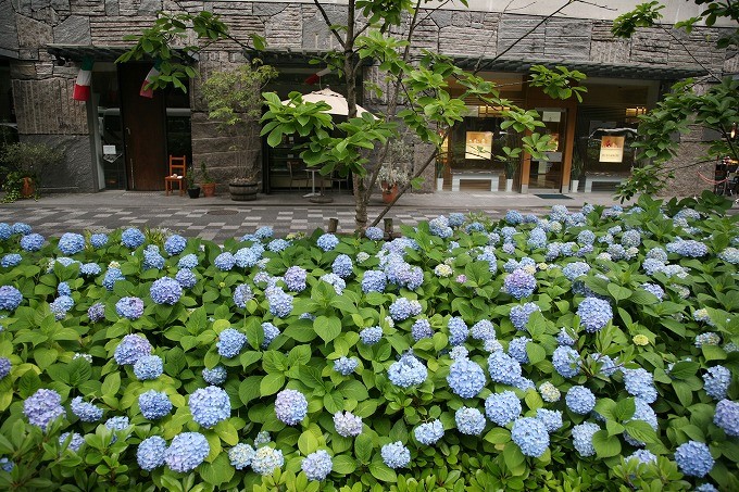 街中に咲く紫陽花風景でした。