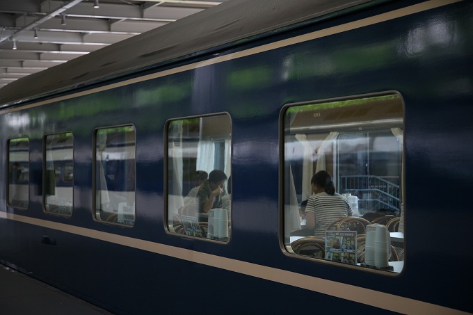 ナシ20形24号車。寝台特急「ブルートレイン」の食堂車として活躍した車両では、
