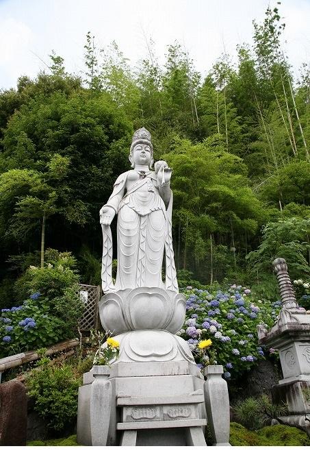 紫陽花の中に建つ観音様は、「さしのべ観音」様。