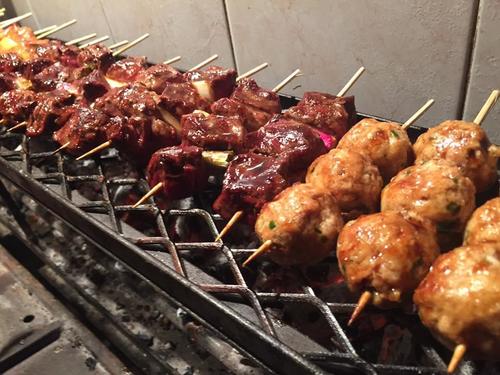 基本的な焼き鳥、ねぎま、つくね、きも、皮、それ以外に、野菜、豚肉にアルゼンチン人向けに牛肉メニューもあります。
