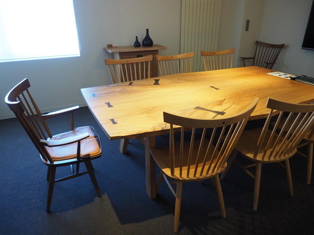 座り心地抜群のステキなダイニングテーブルで、北海道のあちこちから集まった
