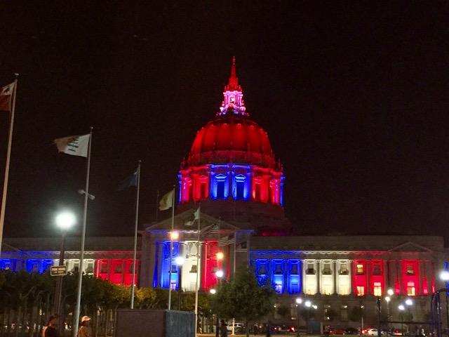 サンフランシスコに限らずアメリカ中、赤・白・青になっちゃうくらい星条旗をモチーフにした飾り付けやライトアップです。 今年は月曜日が4日になるので3連休のロングホリディーウィークエンドざんす。