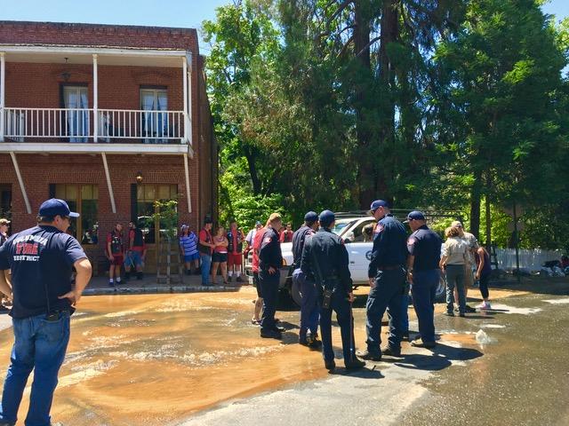 さすが、ゴールドラッシュの町、真面目に金を探している人発見! 流れているのは破裂した水道菅からの水。