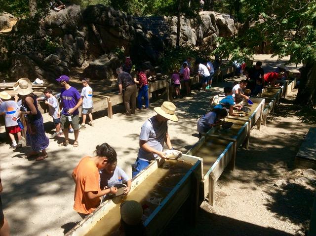 ゴールドラッシュ初期の頃は単純に川の泥水をすくって洗うみたいに砂金採取をしていた → 町の入り口で水道水でやっていたような格好だ。 金の含有率がすごく高くて誰でも簡単に採取できたんだそうだ。 でも鍋ですくってではちょっとしか採取できないから、今度は川の傍に水路を作ってそっちに水を流し現れた川底から金を採取するという方法に変わっていったようだ。 ゴールドラッシュ1853年までで、約370トンの金が採取されたらしいですよ。