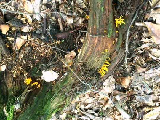 この木から生えている、黄色のサンゴのようなものもきのこです。