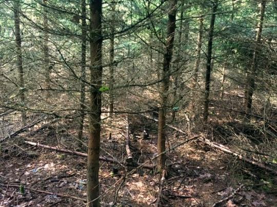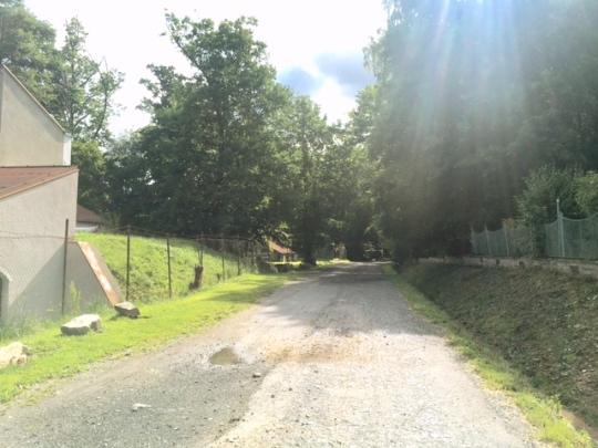 山道を歩いていくと、日陰の山林があります。