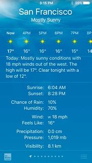この時期スマホ(iPhone)の表示温度と体感温度を見比べるといいかもしれない。 気温17℃で "Feels Like 16℃" 穏やかな日、差があればあるほど寒く感じる。 当然と言えば当然だけど、日本の30°C超えからいきなり20°C以下さらに体感温度までみると重ね着のほうがいいし "ストール、スカーフ" は重宝する。