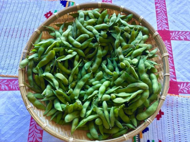 枝豆と言えば冷凍が年中手に入るけど、7〜8月は『生の枝豆』が出回る。 “TANIGUCHI FARM(日系の方でしょうね)” が毎年売りに出してくれてます。 売り切れごめん少量生産。 とにかく直ぐ茹でてしまおう。