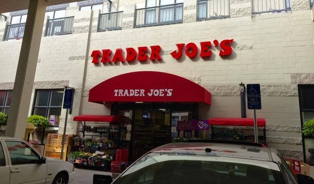ノブヒルにあるTJは、午前中と夜8時過ぎはレジに並ぶ列が短い。
