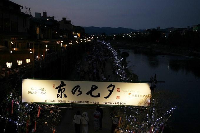 光の七夕飾りは四条大橋から川沿いに灯っています。