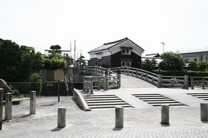 風流な木造の反橋(太鼓橋)は、京阪電車の八幡市駅から南へ徒歩約3分程の所にあります。
