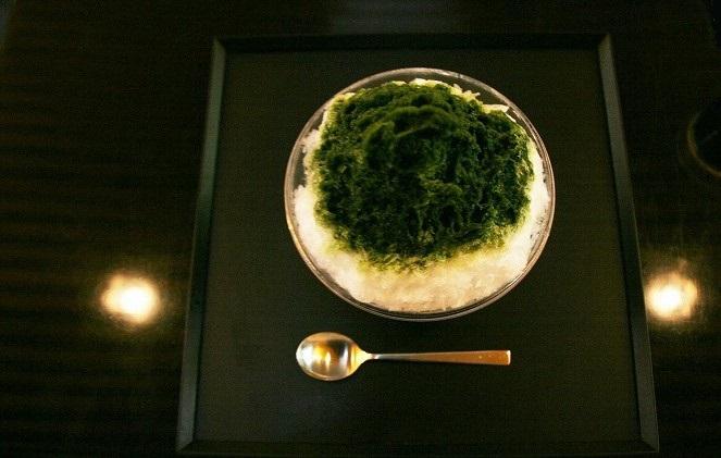 虎屋さんのかき氷は、新雪の様な、きめの細かい氷に濃厚な宇治抹茶蜜がかかり