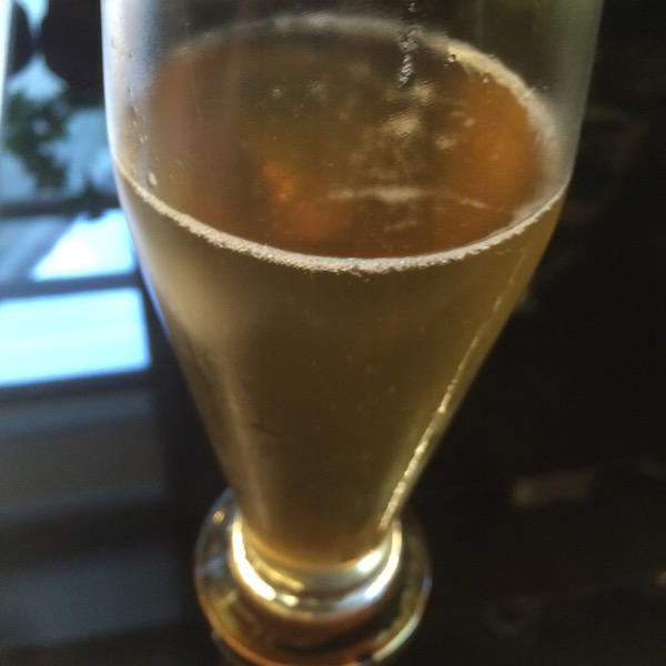 Naturtrüb(ナトゥールトルゥーブ)という「濾過していない」ビールなので、もともと少し濁った色合いなのですが、夜の薄暗い光の下で飲んでいると、このような色に見えます。