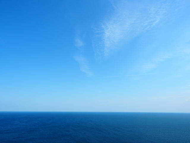 実物は地球の丸さをもっと実感できる円い水平線を見ることができます。
