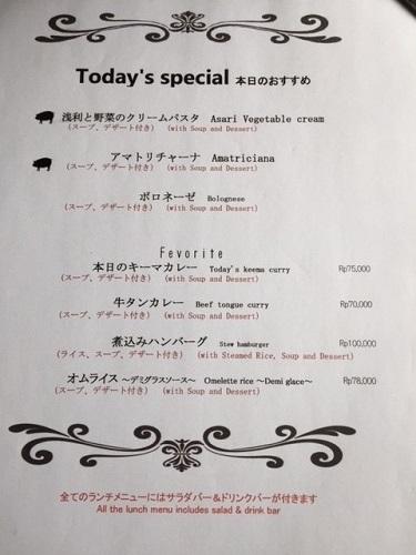 なんと、パスタランチは75000ルピア(700円ぐらい)、サラダバーだけ注文するのと50円ほどしか