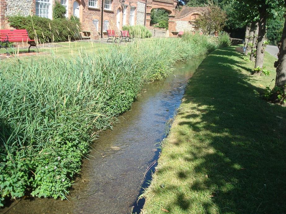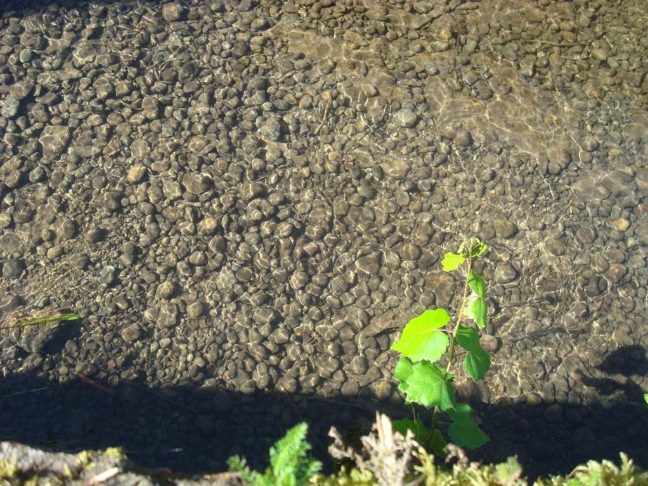 教会の裏には、小石のひとつひとつまで透き通って見える小川。のどかな風景にホッと癒されます。