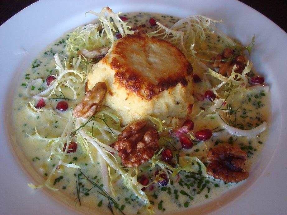 私と連れは二人とも、前菜にはブルーチーズのスフレを選びました。程よい味付けのふわふわスフレ、ワインのお供にぴったり♪