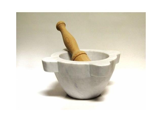 ペースト・ジェノヴェーゼを作るための大理石の擂り鉢と木のすりこぎは一家に一つは必ずあります。
