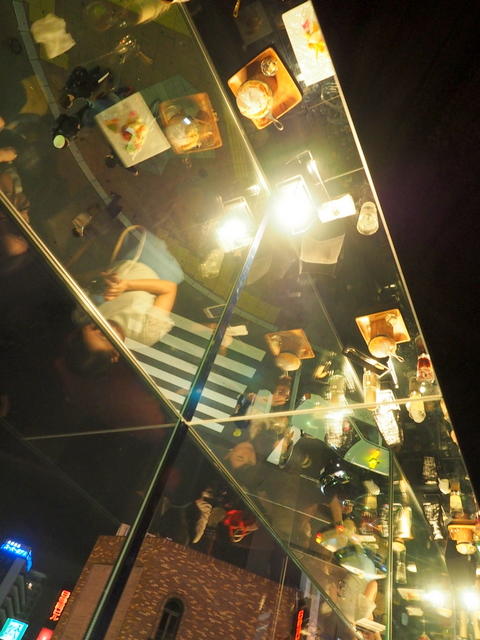 窓際カウンター席に座ると、ススキノの交差点が眼下に。