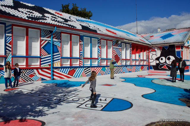 地下鉄ナシオナル駅から徒歩すぐの会場で開かれたZDEYによるインスタレーション。幼稚園の建物がZDEYの世界観に塗られていました。ZDEYのトレードマークとも言える、真っ黒のキャラクターもいます。会場で音楽をかけていたDJのお兄さんもノリノリでした!