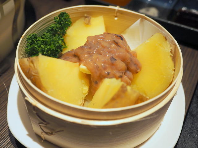 “Steamed Hokkaido potatoes with butter and salted squid guts”
