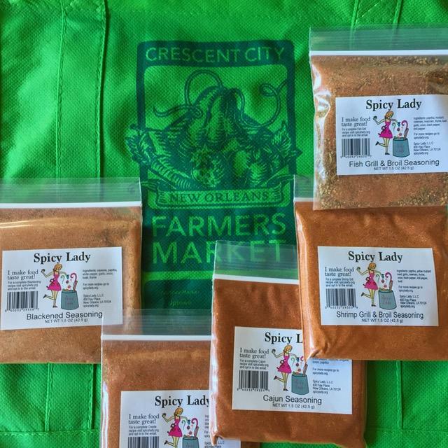 ファーマーズマーケットで買ったのがエコバックとローカルのケイジャン系スパイス。