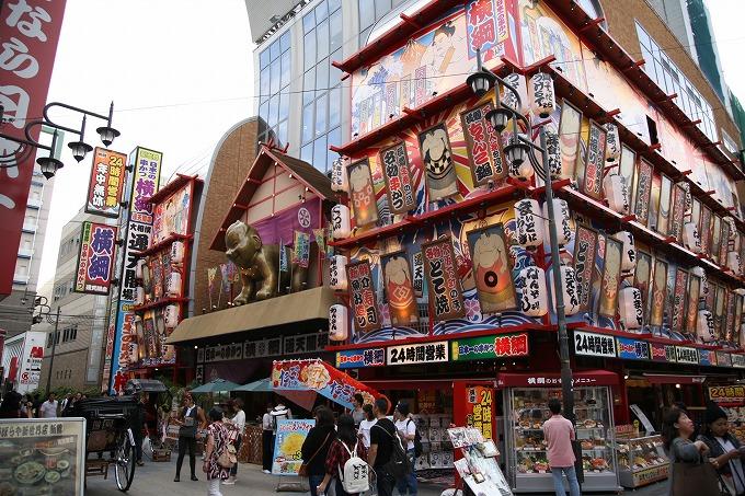地下鉄恵美須町で下車して、地上に出ると真っ直ぐな通りと通天閣の