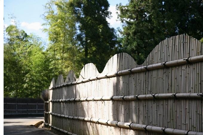 竹林道の両脇に立つ竹垣には、