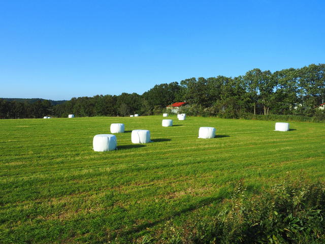 10月初旬は、まだ牧草ロールがあちこちに並んでいました。