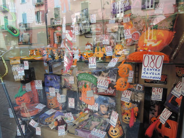 さて、もうすぐハロウィンの日が迫ってきました。イタリアはほとんどの人たちがカトリック教徒なので、ハロウィンの行事は行いませんが、それでも最近ではバールやお菓子屋さん、スーパーでも飾りつけをしビジネス合戦を密かにしていて、幼稚園や小学校でもイベントが行われるそうです。そして当日は仮装をし街を歩く人達もいてます。ただ、カトリック教徒に反する行動はせずソフトにするそうです。しかしながら、信仰の深い信者はこのイベントを今でも反対しています。