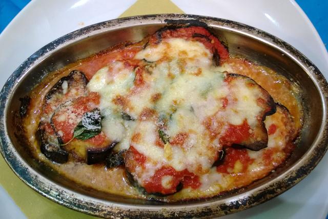 ↑ ナスとパルミジャーノチーズのオーブン焼きです。素朴さが良いです。