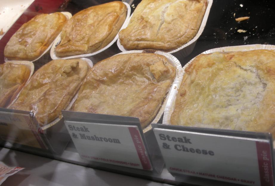こちらはステーキ&エール・パイ。エールというのはビールの一種なので、早い話が牛肉のビール煮込みが具になったパイです。グレイヴィー・ソースをかけて食すのがイギリス流。