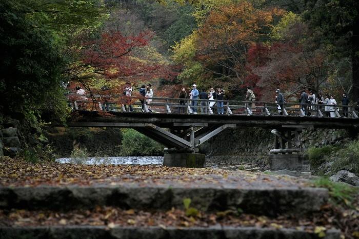 もみじの小径は、叡山電鉄八瀬駅から木橋を渡って、少し歩くと